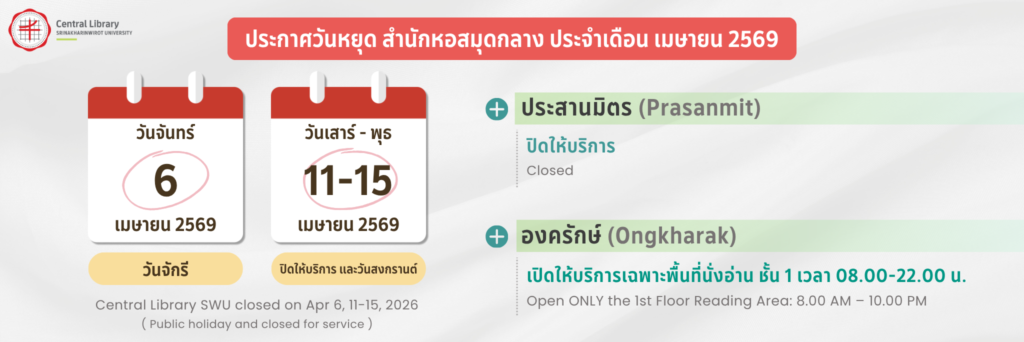 🚫 ห้องสมุดปิดบริการวันหยุดนักขัตฤกษ์ (ดูเพิ่มเติม)