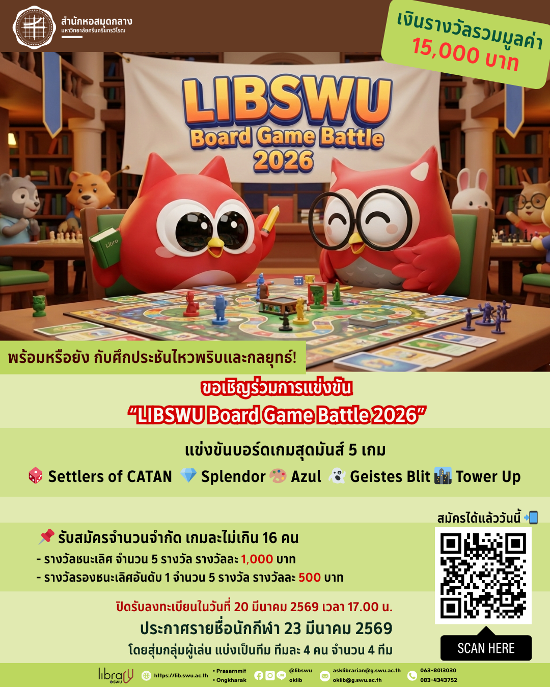 🚫 ห้องสมุดปิดบริการวันหยุดนักขัตฤกษ์ (ดูเพิ่มเติม)