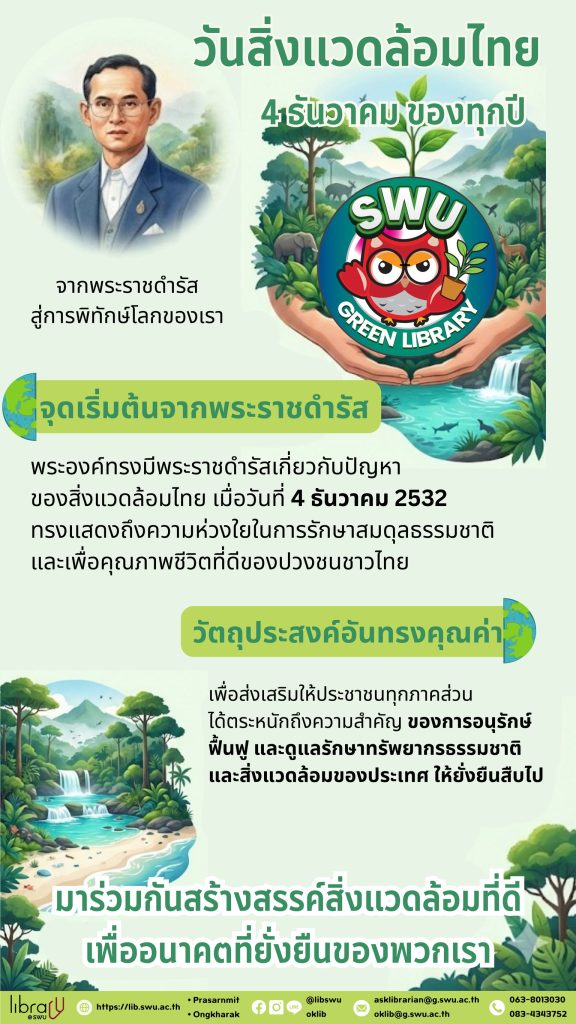 สำนักหอสมุดกลาง มศว เชิญชวนทุกท่านร่วมกิจกรรมส่งเสริมการเรียนรู้ด้านสิ่งแวดล้อม