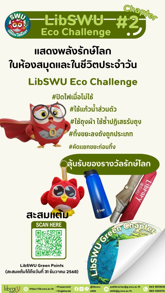 ทำภารกิจง่าย ๆ ก็ได้ LibSWU Green Points ไปสะสมทันที! มาลุ้นรับของรางวัลรักษ์โลกไปด้วยกัน