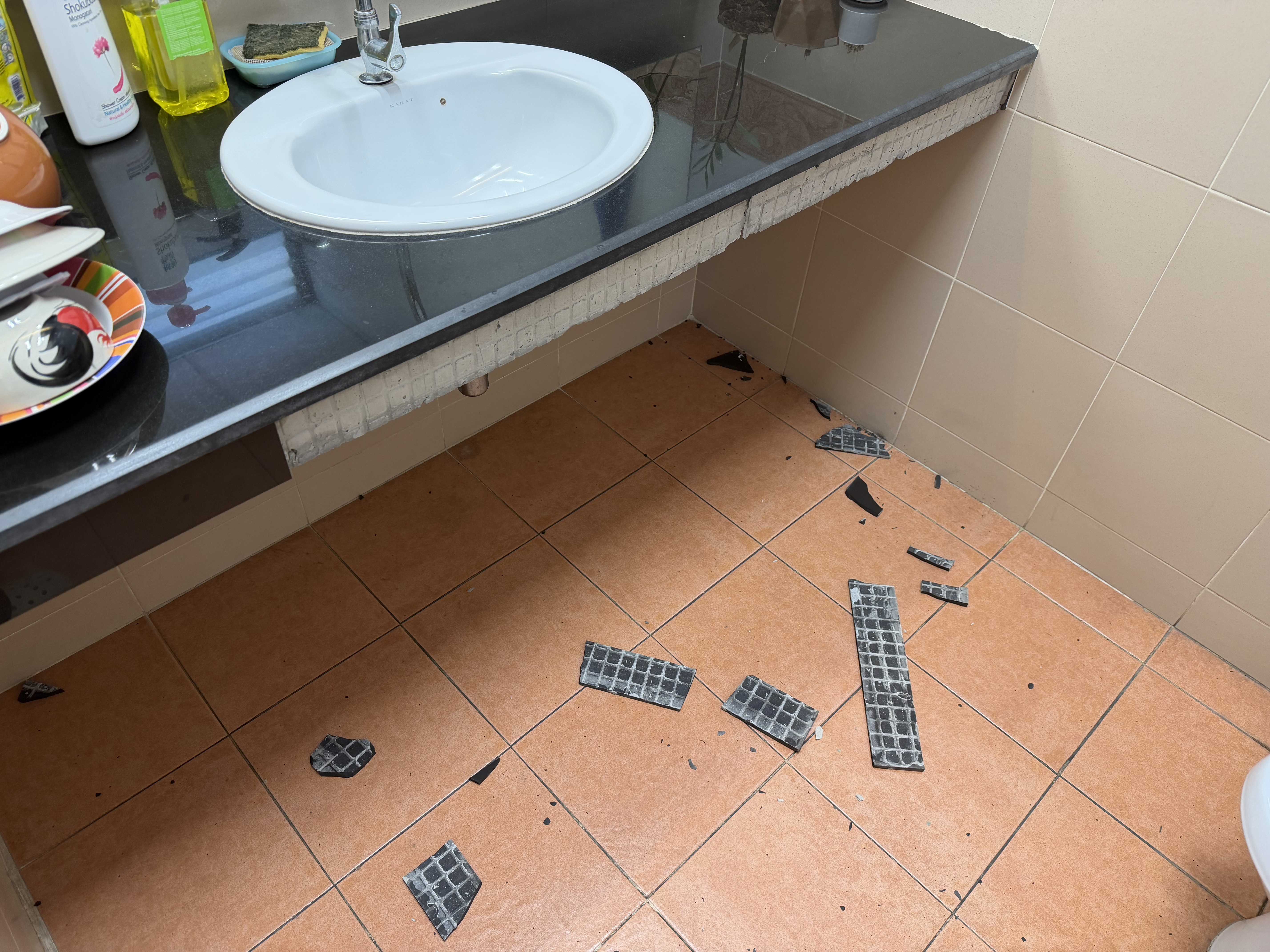 กระเบื้องขอบอ่างล้างมือหลุดและแตกในห้องน้ำ