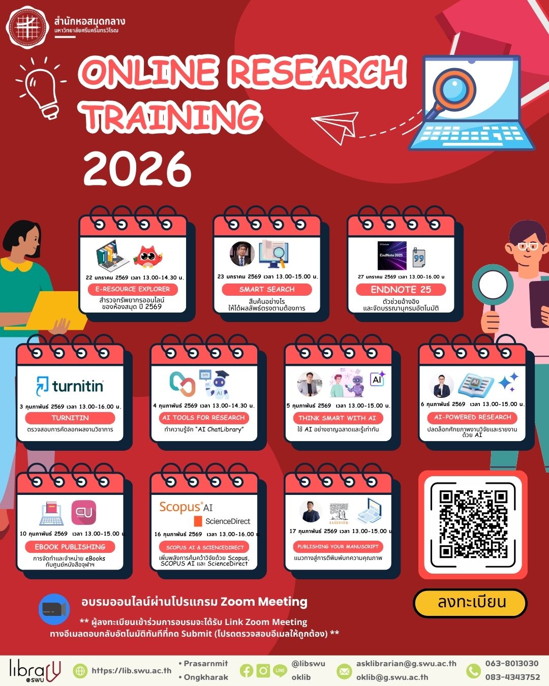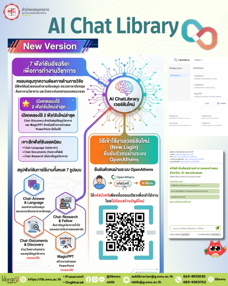 อีเมล : oklib@g.swu.ac.th, asklibrarian@g.swu.ac.th