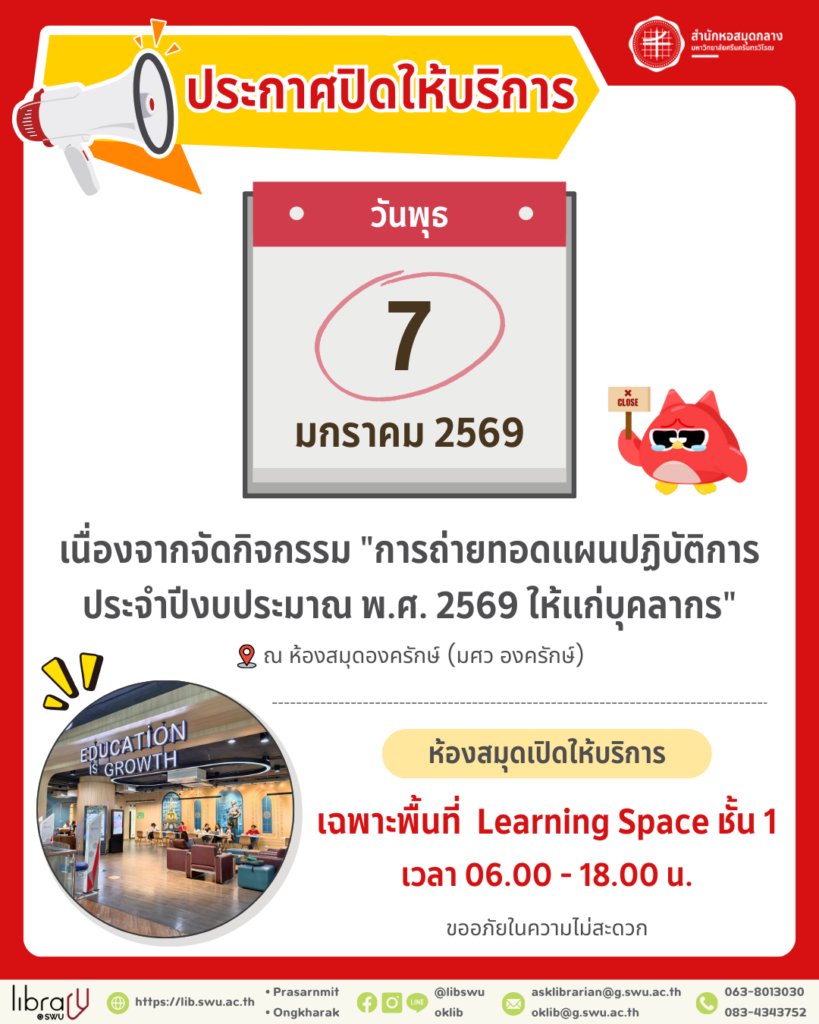 📢 ประกาศจากสำนักหอสมุดกลาง มศว