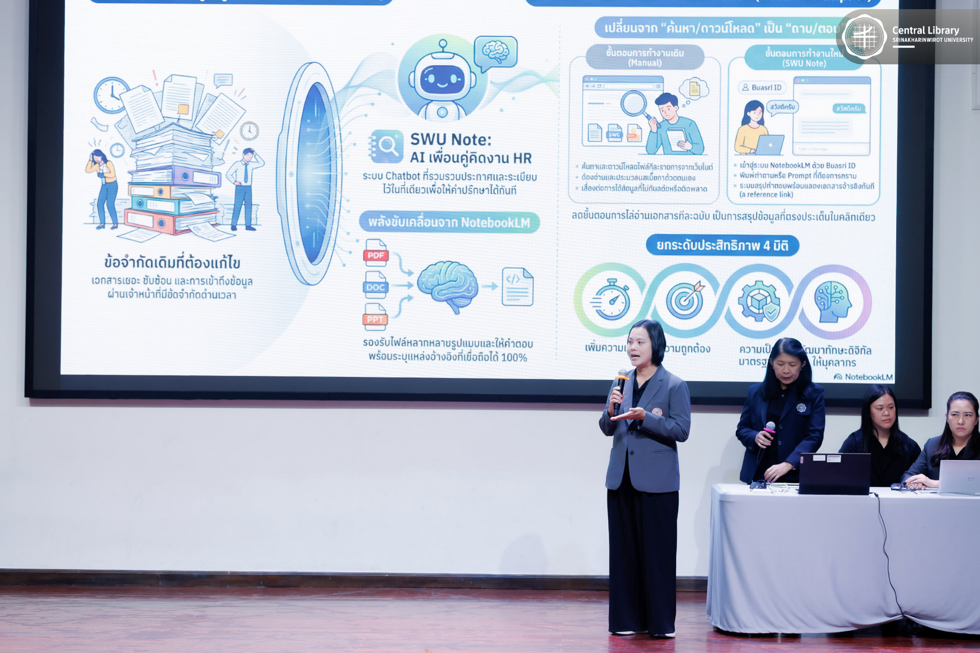 โดยได้รับเกียรติจาก รองศาสตราจารย์ ดร.ชลวิทย์ เจียรจิตต์ อธิการบดีมหาวิทยาลัยศรีนครินทรวิโรฒ พร้อมด้วยคณะผู้บริหาร มศว ร่วมรับฟังการนำเสนอและให้ข้อเสนอแนะแก่ผู้เข้ารับการอบรม