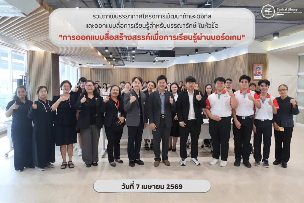 รวมภาพบรรยากาศโครงการพัฒนาทักษะดิจิทัลและออกแบบสื่อการเรียนรู้สำหรับบรรณารักษ์ ในหัวข้อ “การออกแบบสื่อสร้างสรรค์เพื่อการเรียนรู้ผ่านบอร์ดเกม”