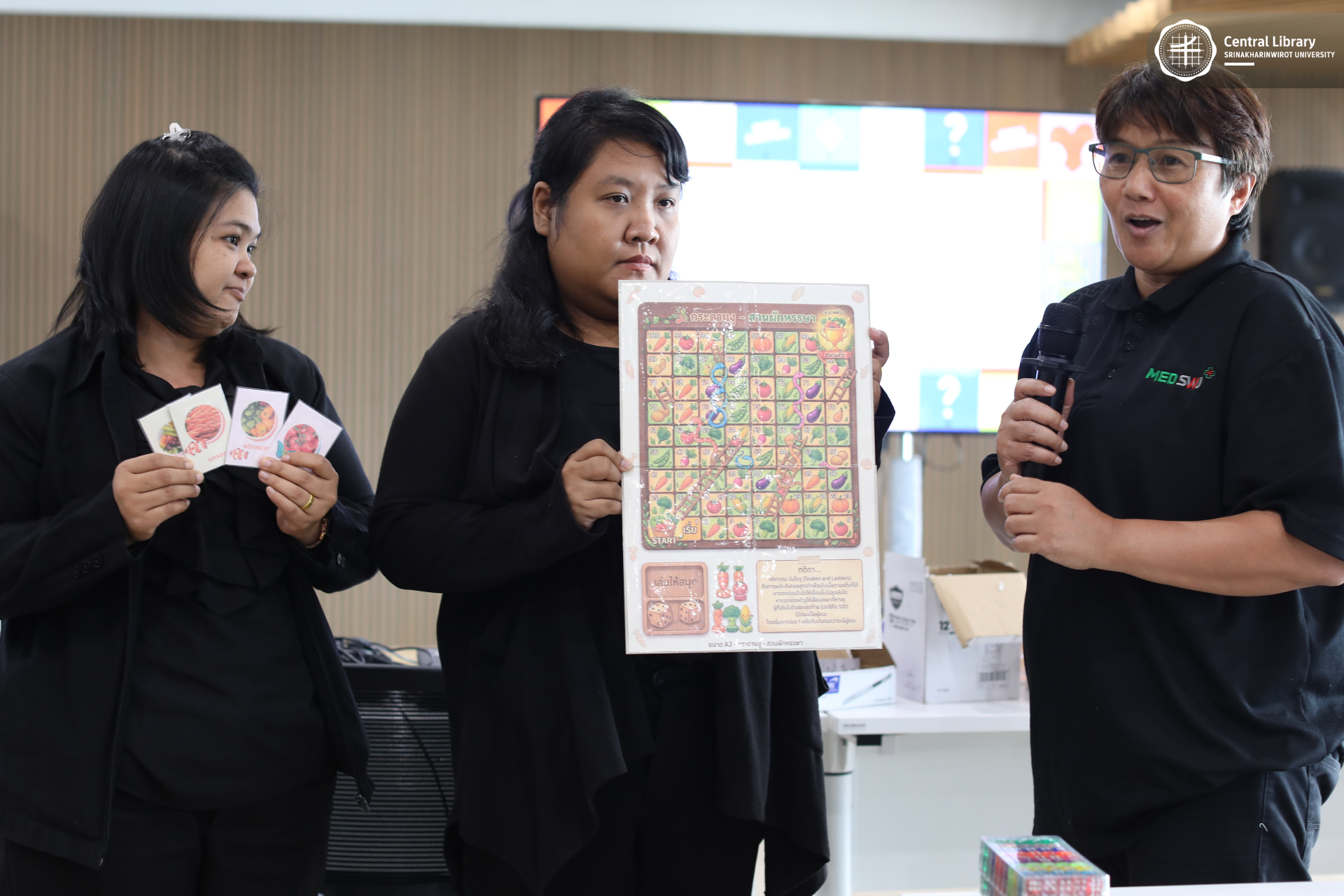 ที่ได้มามอบความรู้ และสร้างแรงบันดาลใจในการสร้างสรรค์บอร์ดเกมที่มีทั้งความสนุกสนาน และช่วยส่งเสริมทักษะการคิดวิเคราะห์ การแก้ปัญหา และการสื่อสาร ซึ่งสามารถนำมาประยุกต์ใช้ในงานห้องสมุดได้อย่างมีประสิทธิภาพ เพื่อให้ห้องสมุดเป็นพื้นที่ที่สร้างความสุขควบคู่กับปัญญา