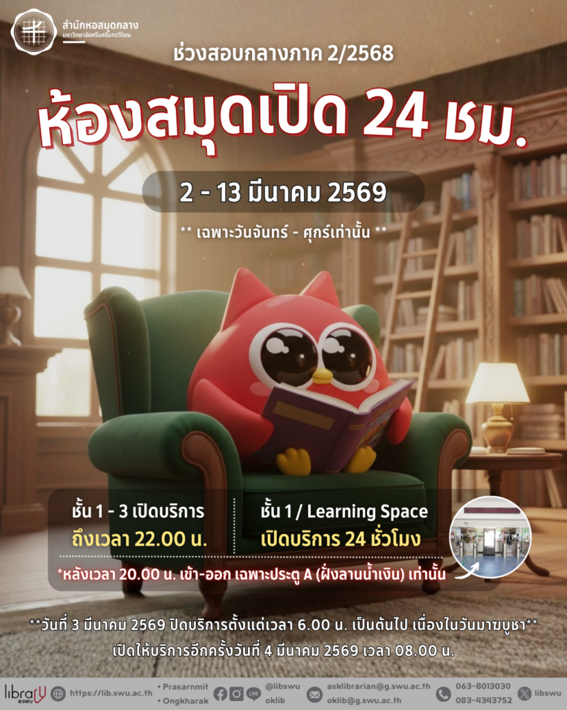 ห้องสมุดเปิดให้บริการ 24 ชั่วโมง ช่วงสอบกลางภาค 2/2568