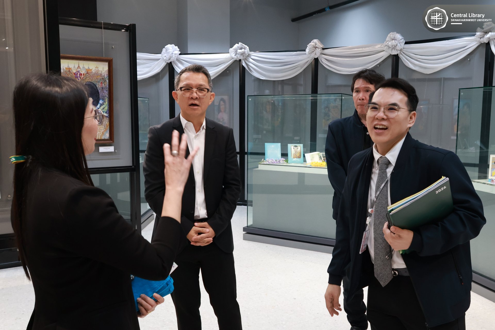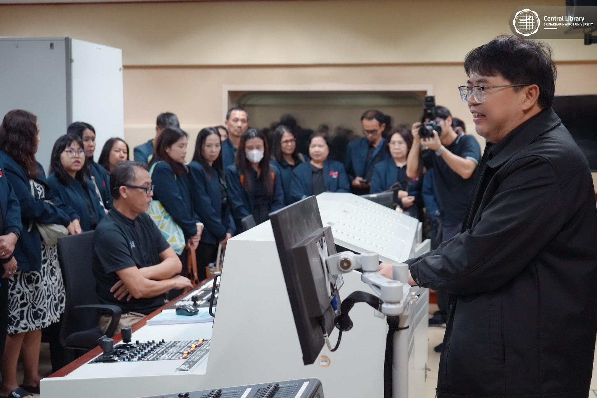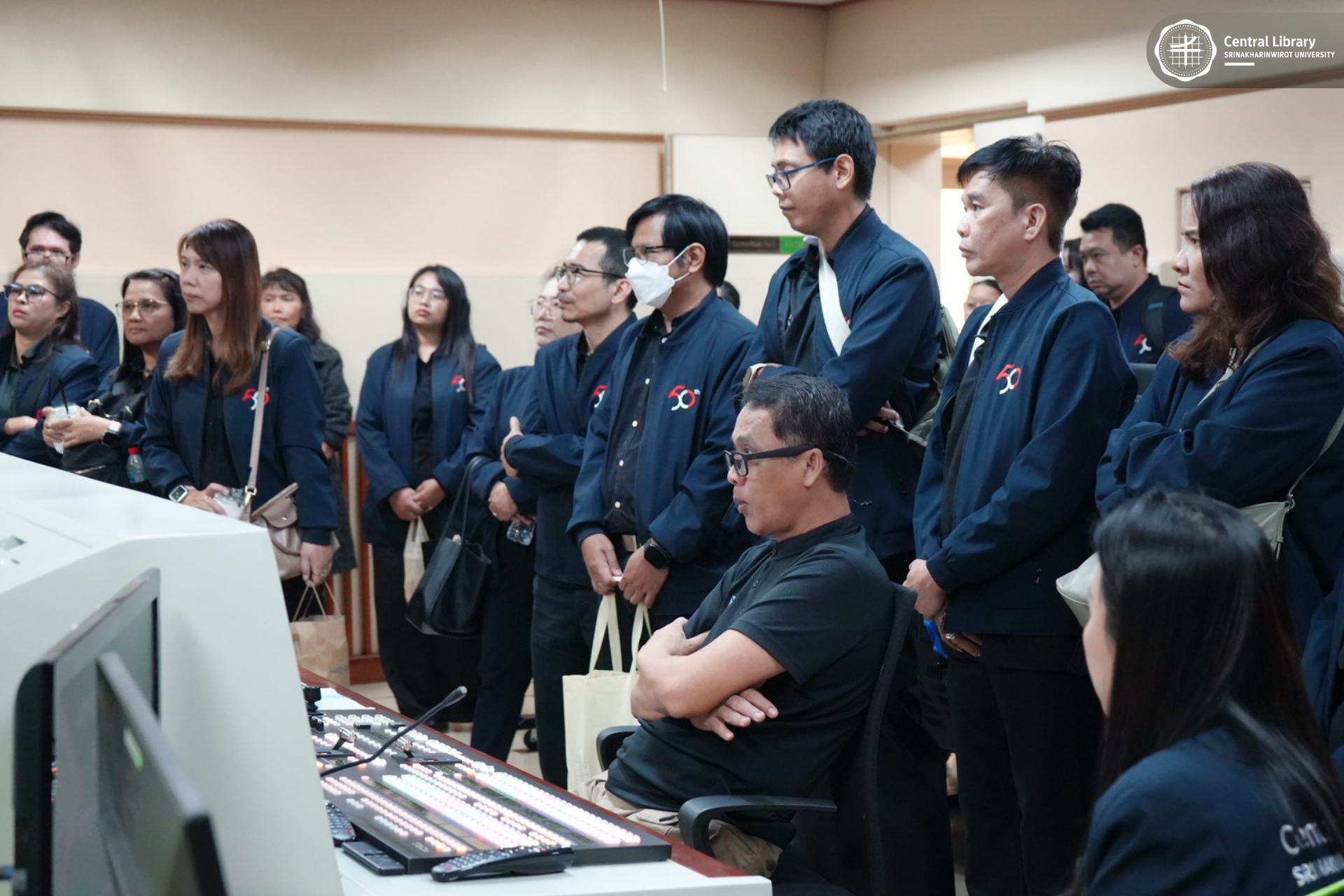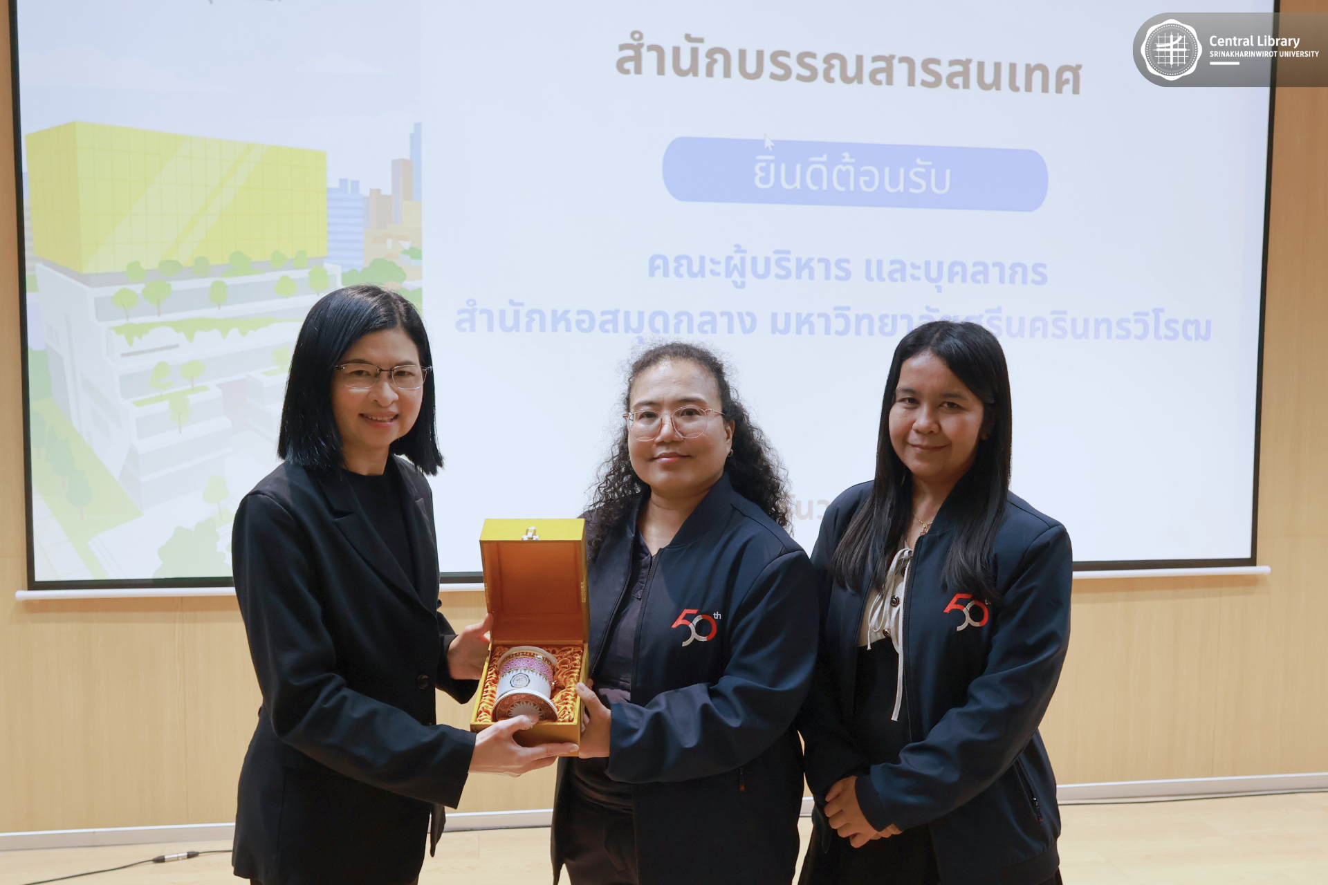 ในการนี้ สำนักหอสมุดกลาง มศว นำโดย ผศ.นพ.วรพล อร่ามรัศมีกุล ผู้อำนวยการสำนักหอสมุดกลาง พร้อมด้วย ผศ.อธิป เตชะพงศธรร รองผู้อำนวยการฝ่ายสื่อสารองค์กรและเทคโนโลยีดิจิทัล และบุคลากรห้องสมุด
