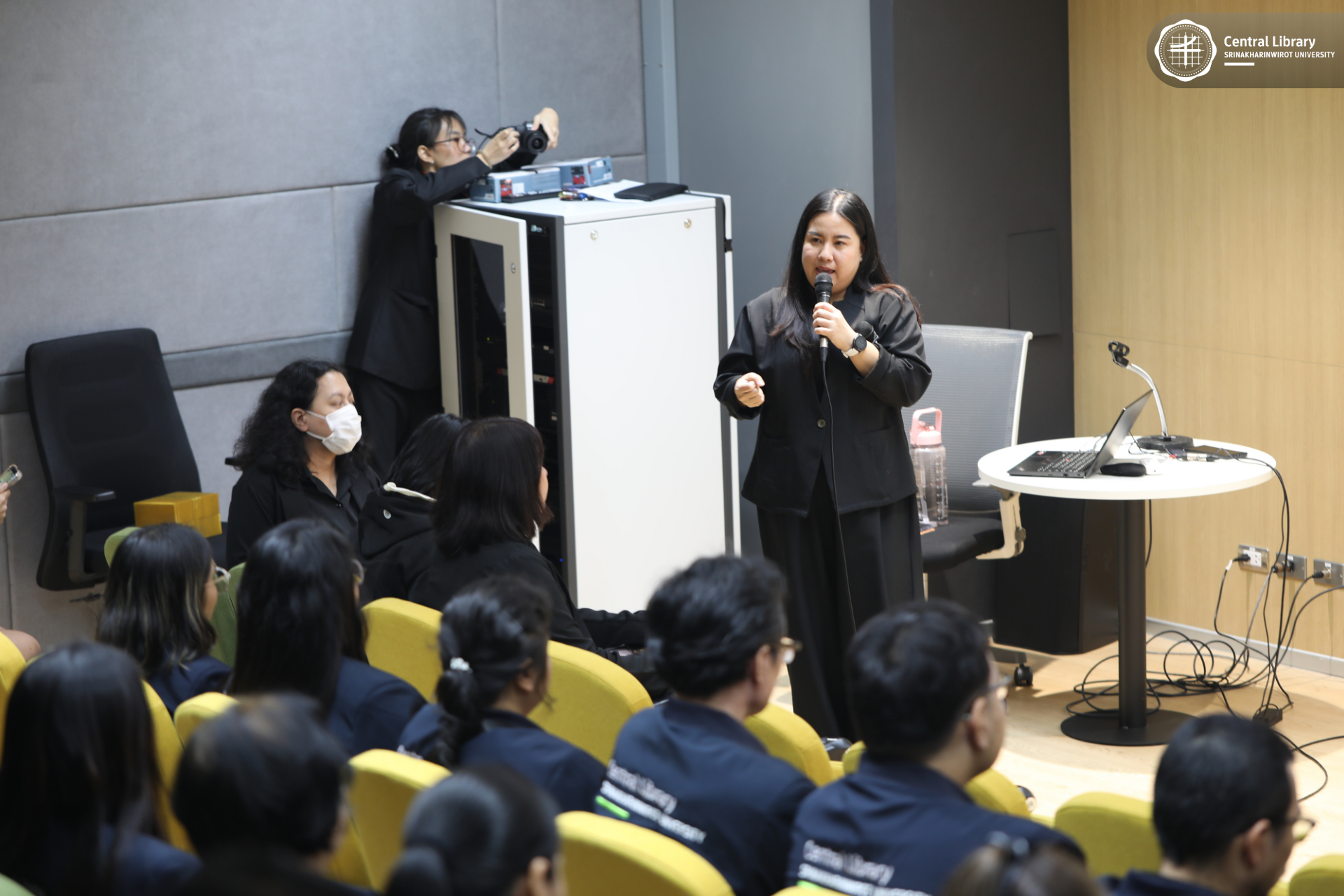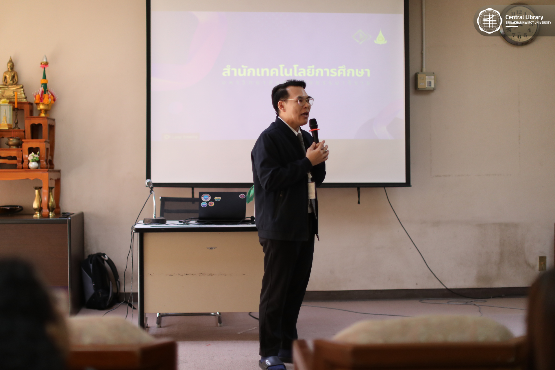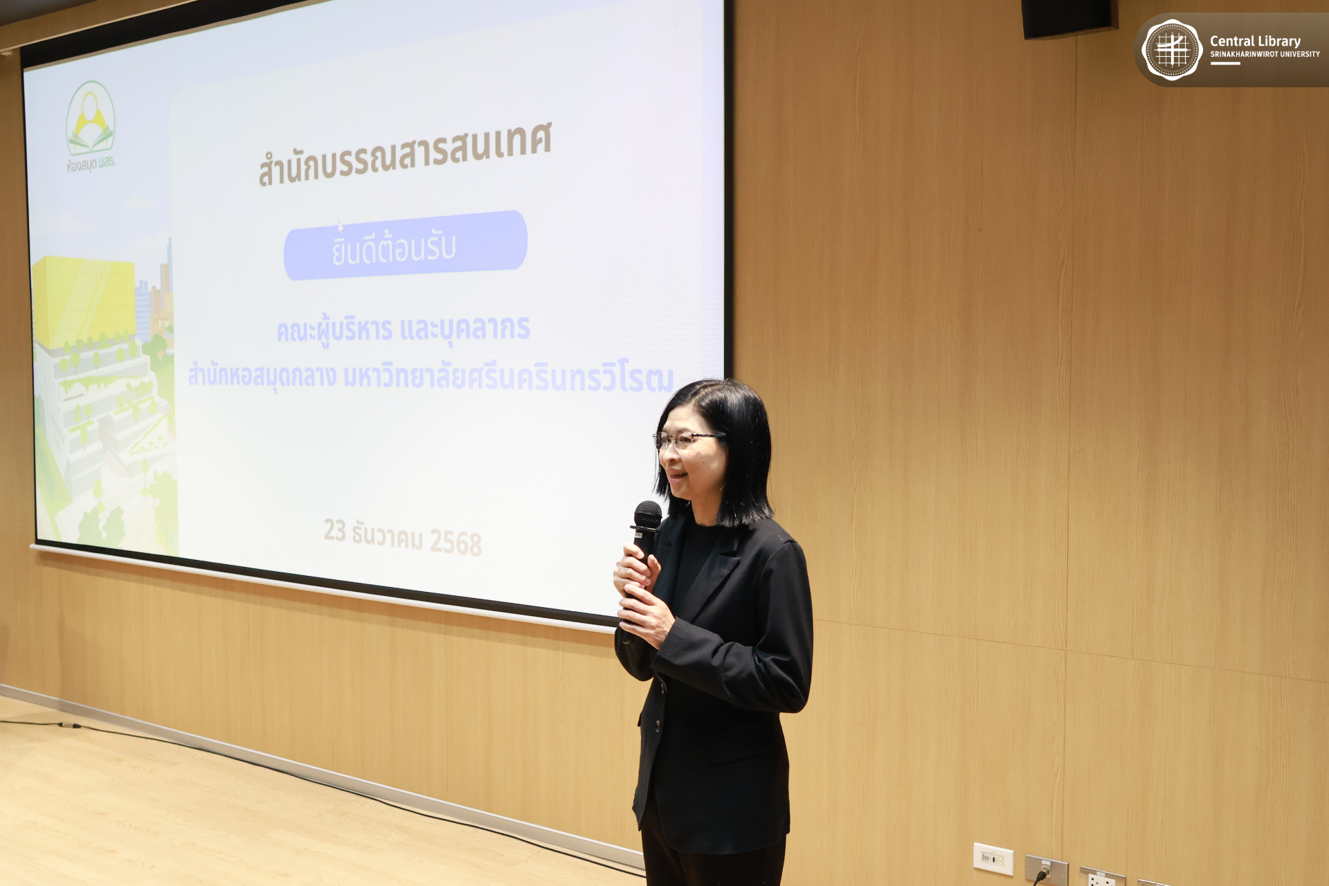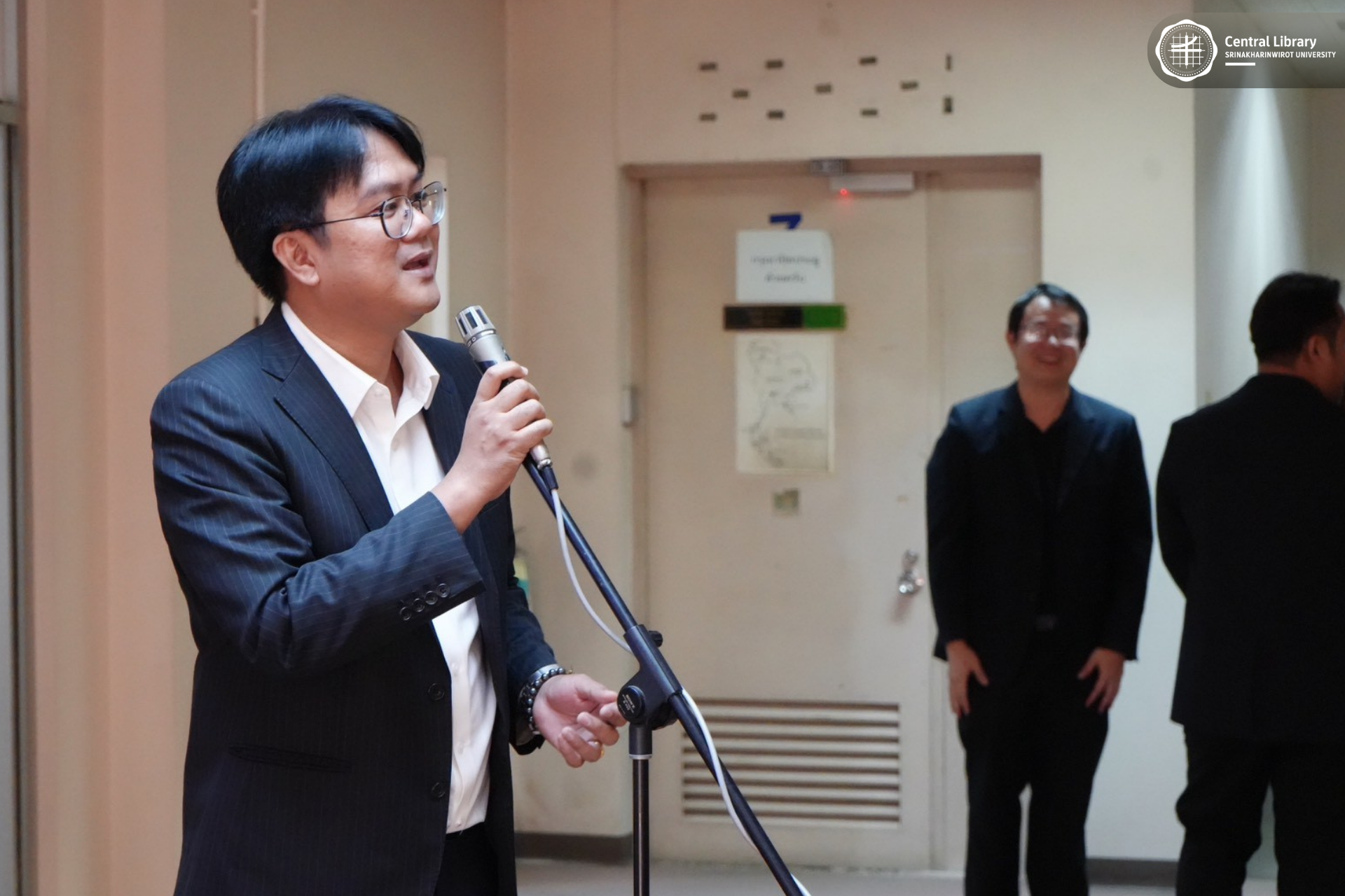 ในการนี้ สำนักหอสมุดกลาง มศว นำโดย ผศ.นพ.วรพล อร่ามรัศมีกุล ผู้อำนวยการสำนักหอสมุดกลาง พร้อมด้วย ผศ.อธิป เตชะพงศธรร รองผู้อำนวยการฝ่ายสื่อสารองค์กรและเทคโนโลยีดิจิทัล และบุคลากรห้องสมุด