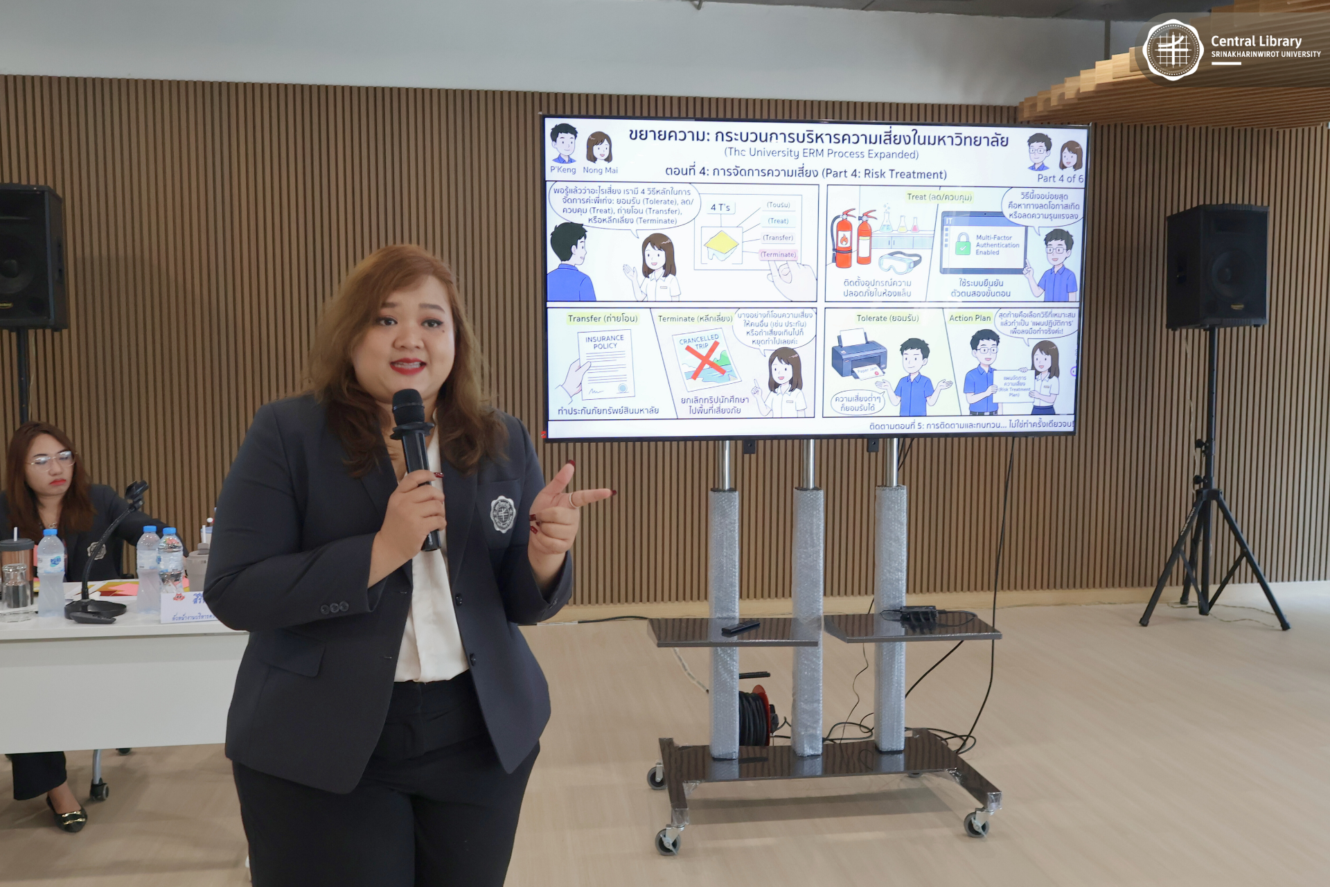 เพื่อสร้างความรู้ความเข้าใจในกระบวนการบริหารความเสี่ยงระดับมหาวิทยาลัย สู่การเป็น “เครื่องมือเชิงกลยุทธ์” (Strategic Tool) ในการสนับสนุนการตัดสินใจเชิงนโยบายและขับเคลื่อนยุทธศาสตร์อย่างเป็นระบบ ในการนี้ บุคลากรสำนักหอสมุดกลางได้ร่วมกันระดมความคิดเห็น เพื่อผลักดันการดำเนินงานให้บรรลุเป้าหมายตามแผนยุทธศาสตร์ของสำนักหอสมุดกลาง ประจำปีงบประมาณ พ.ศ. 2568-2570 อย่างมีประสิทธิภาพ