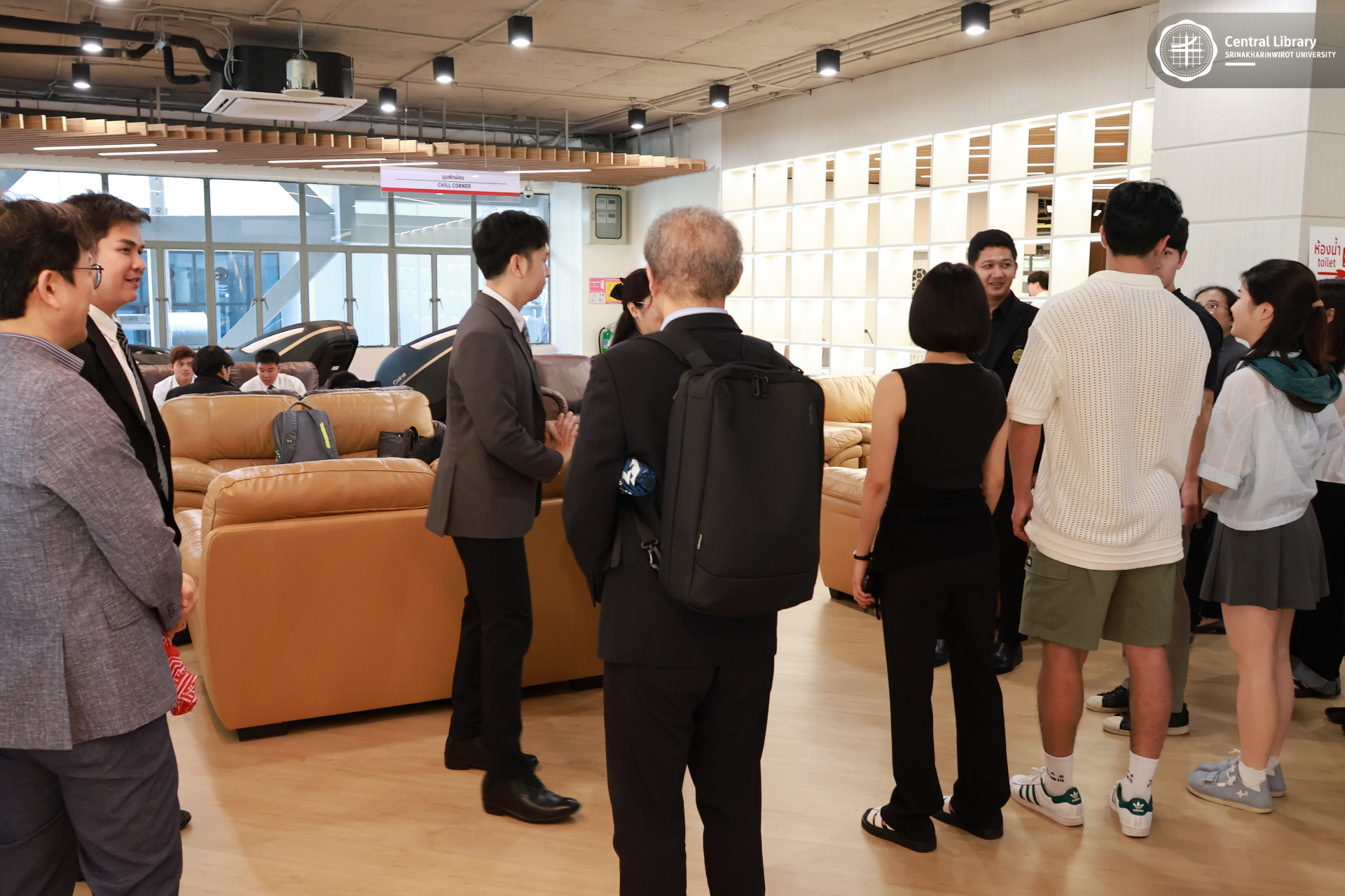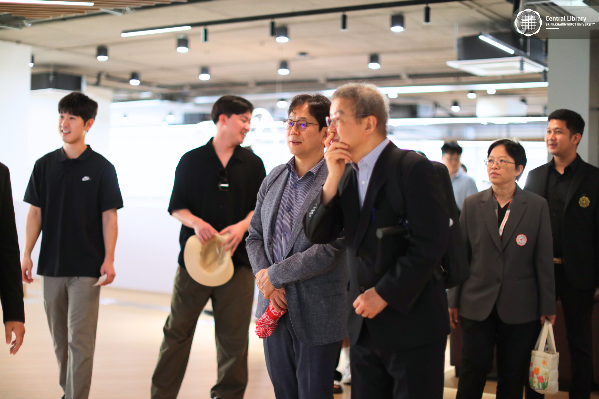 สำนักหอสมุดกลาง มศว ร่วมต้อนรับคณะศึกษาดูงานจาก ภาควิชาสังคมศึกษา คณะสังคมศาสตร์ มศว และ Center for Teacher Education Innovation, Seoul National University สาธารณรัฐเกาหลี เข้าเยี่ยมชมห้องสมุด เพื่อศึกษาฐานข้อมูล แลกเปลี่ยนเรียนรู้แนวทางการจัดการทรัพยากรสารสนเทศ และการให้บริการทางวิชาการ พร้อมเยี่ยมชมพื้นที่บริการต่าง ๆ