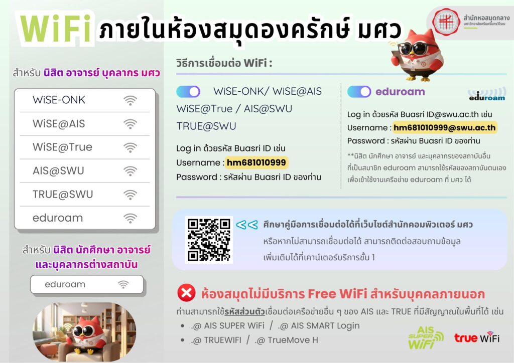📶 บริการ WiFi ภายใน สำนักหอสมุดกลาง มศว และ ห้องสมุดองครักษ์