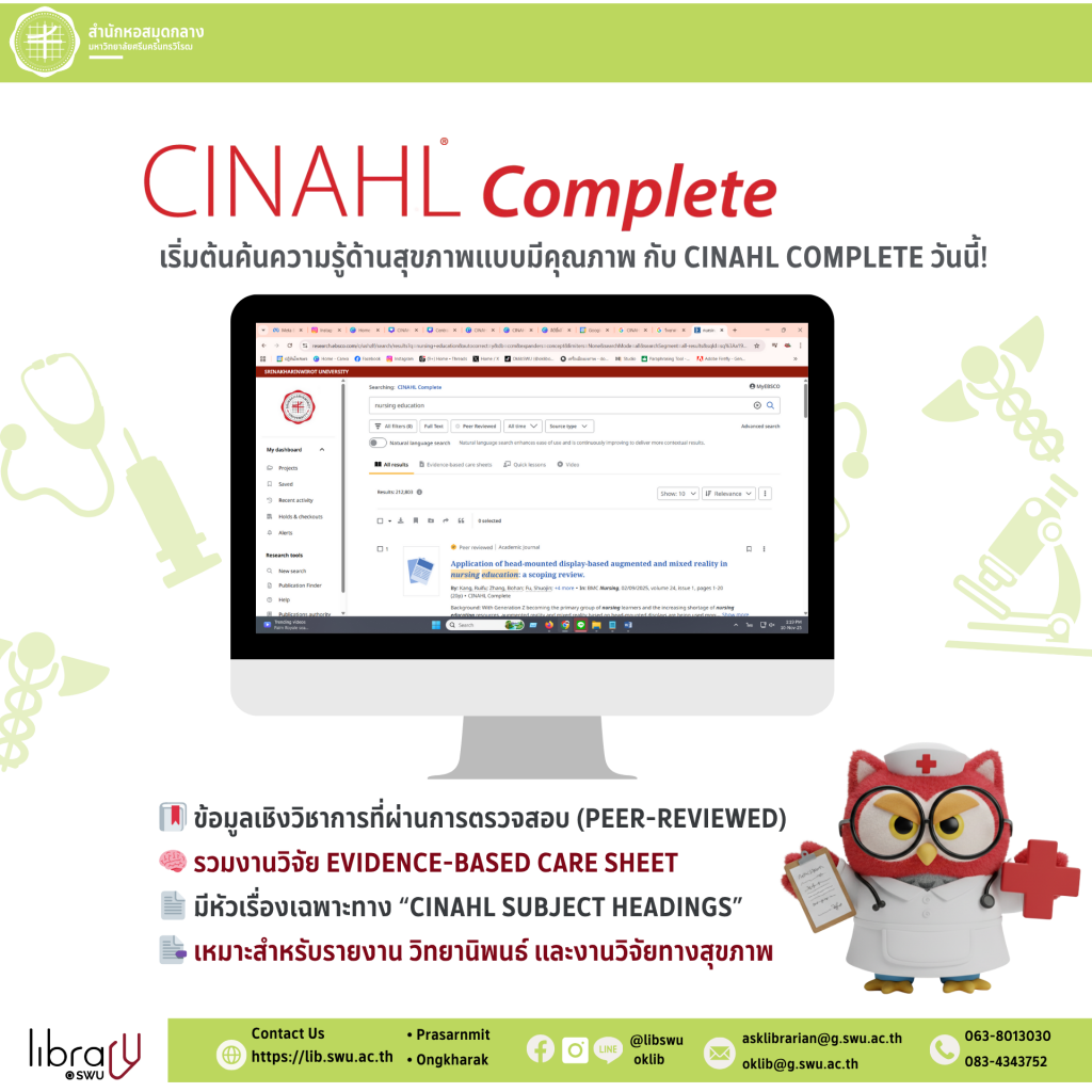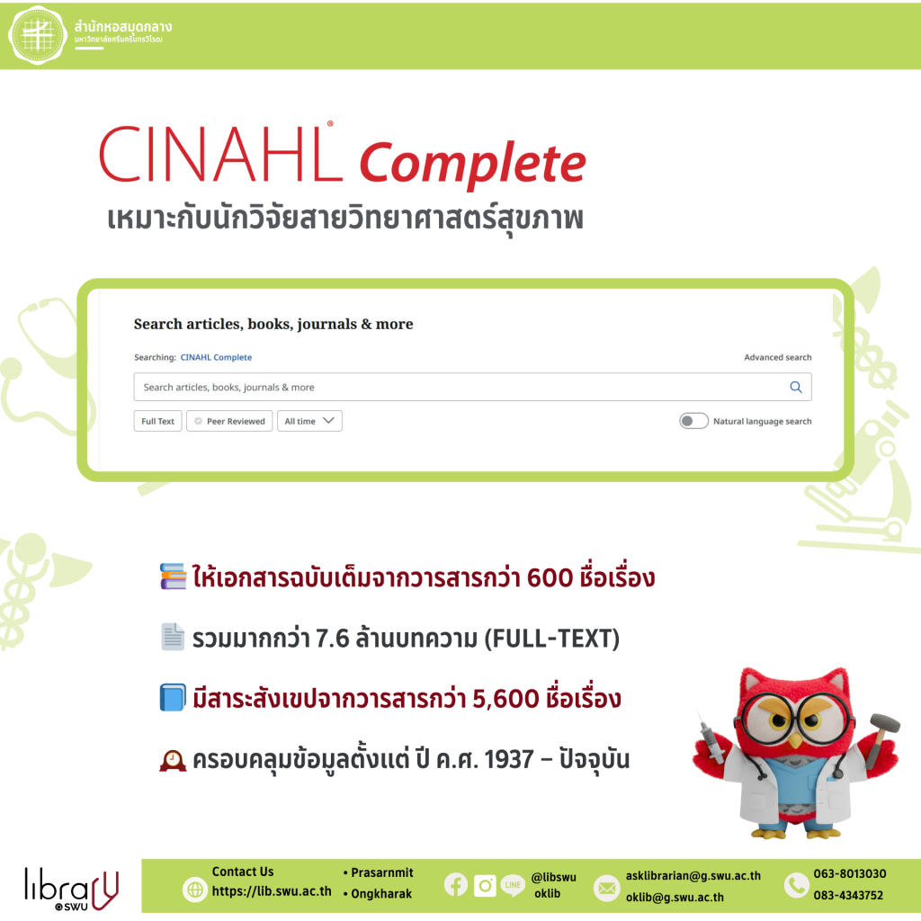 CINAHL Complete ฐานข้อมูลเพื่อสายวิทยาศาสตร์สุขภาพ