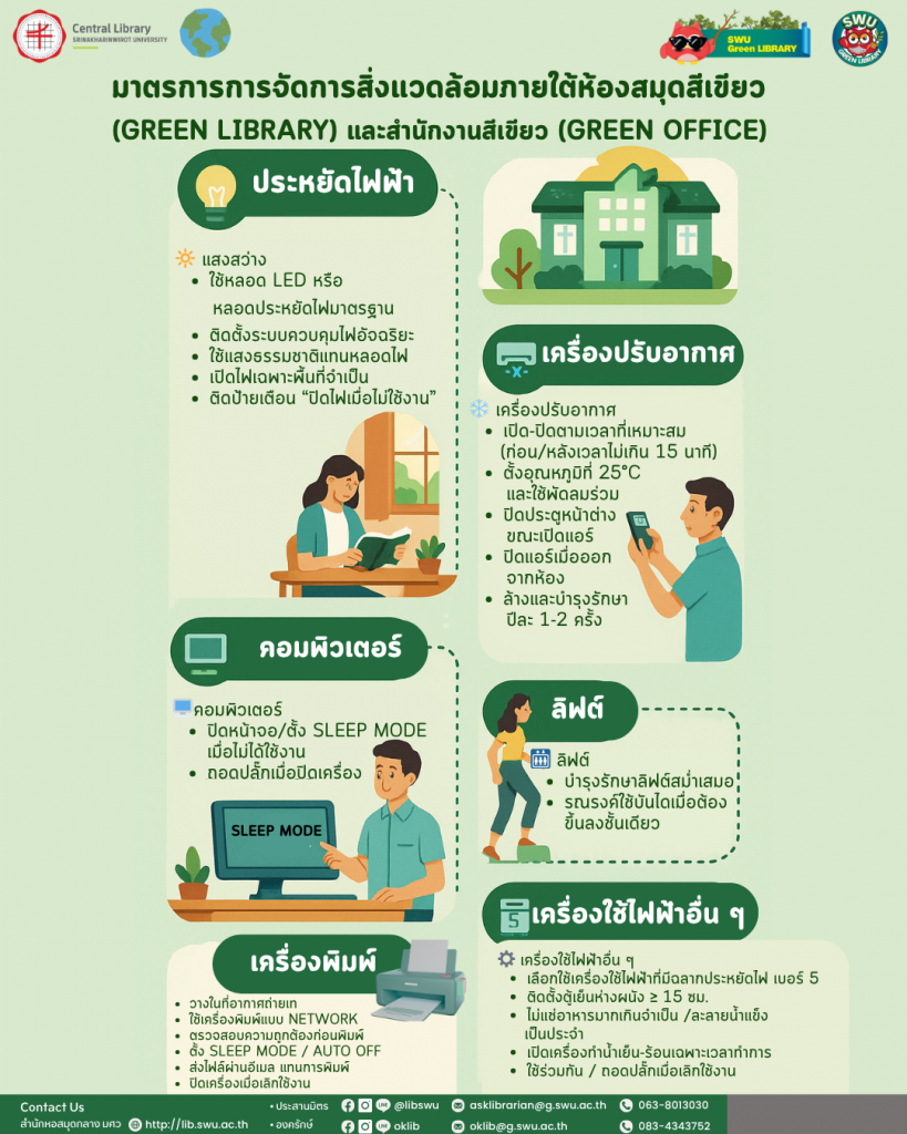 เพียงปฏิบัติตาม มาตรการห้องสมุดสีเขียว (Green Library)
