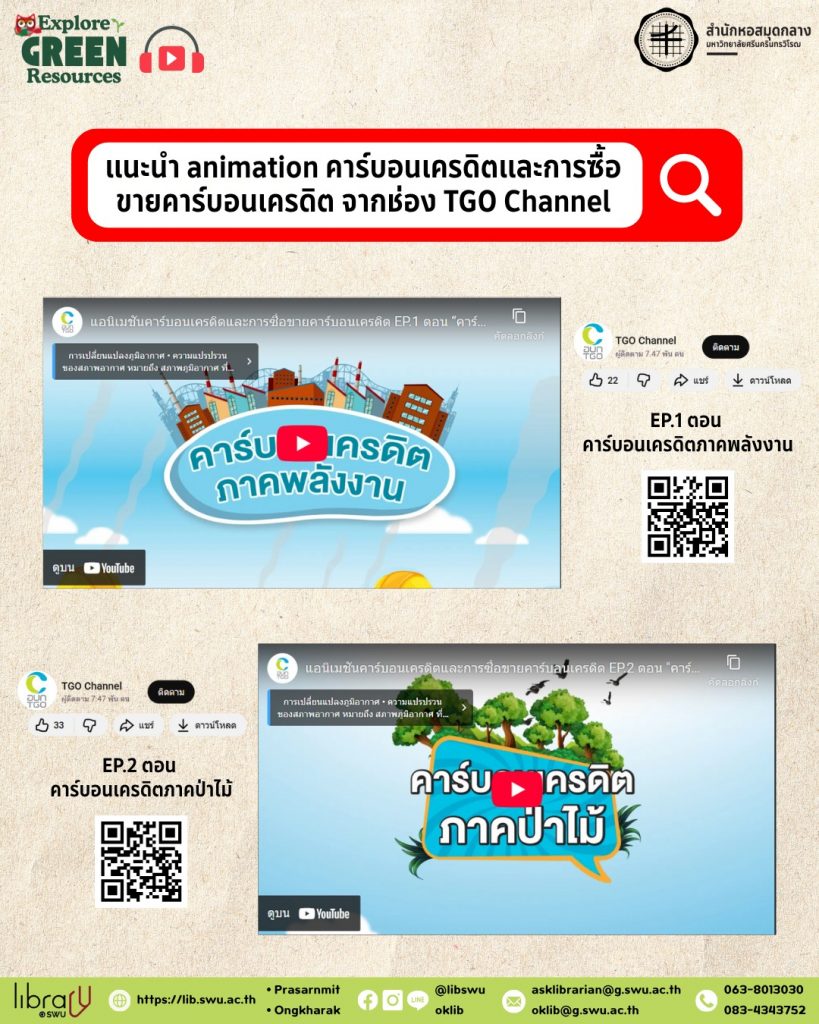 Youtube : แอนิเมชันคาร์บอนเครดิตและการซื้อขายคาร์บอนเครดิต EP.2 ตอน “คาร์บอนเครดิตภาคป่าไม้”