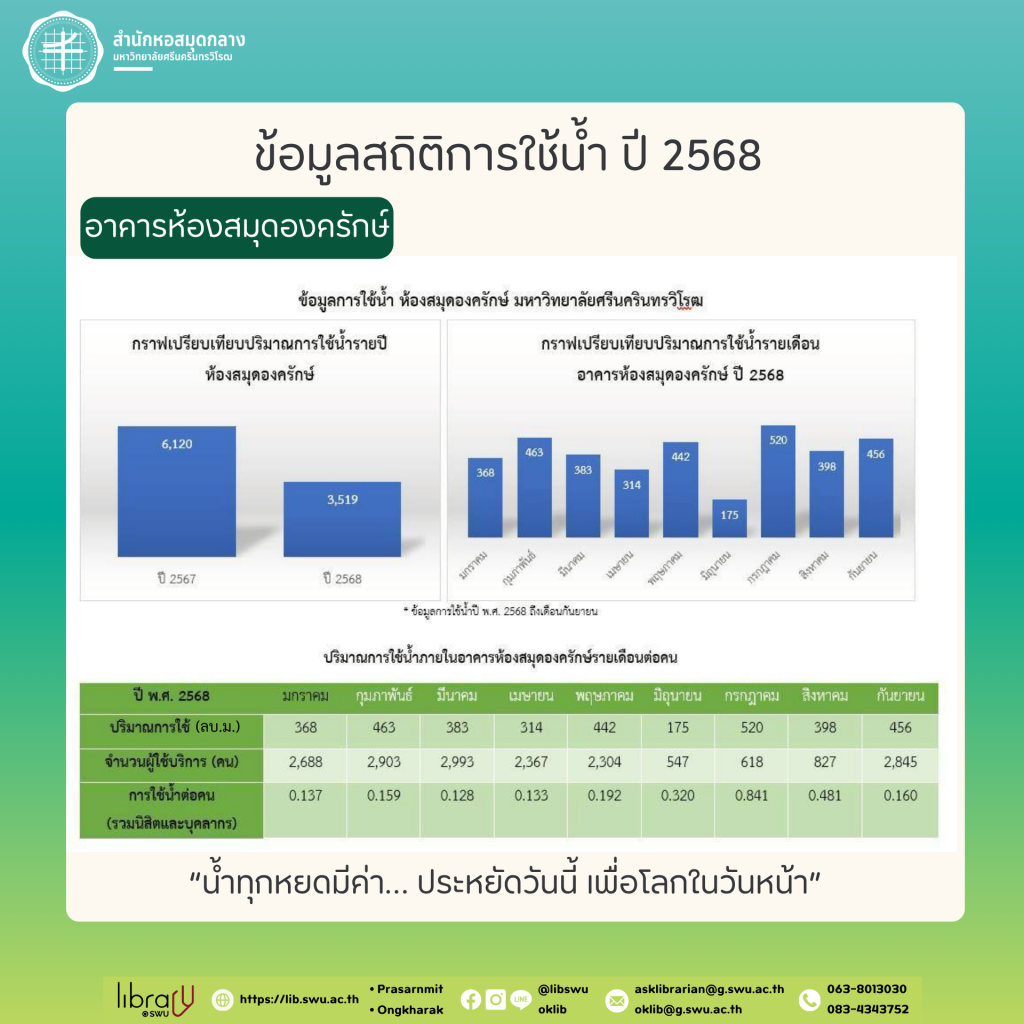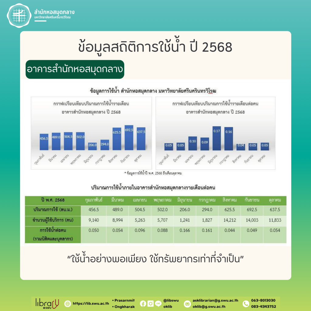 สำนักหอสมุดกลาง ร่วมใจประหยัดน้ำ 💧