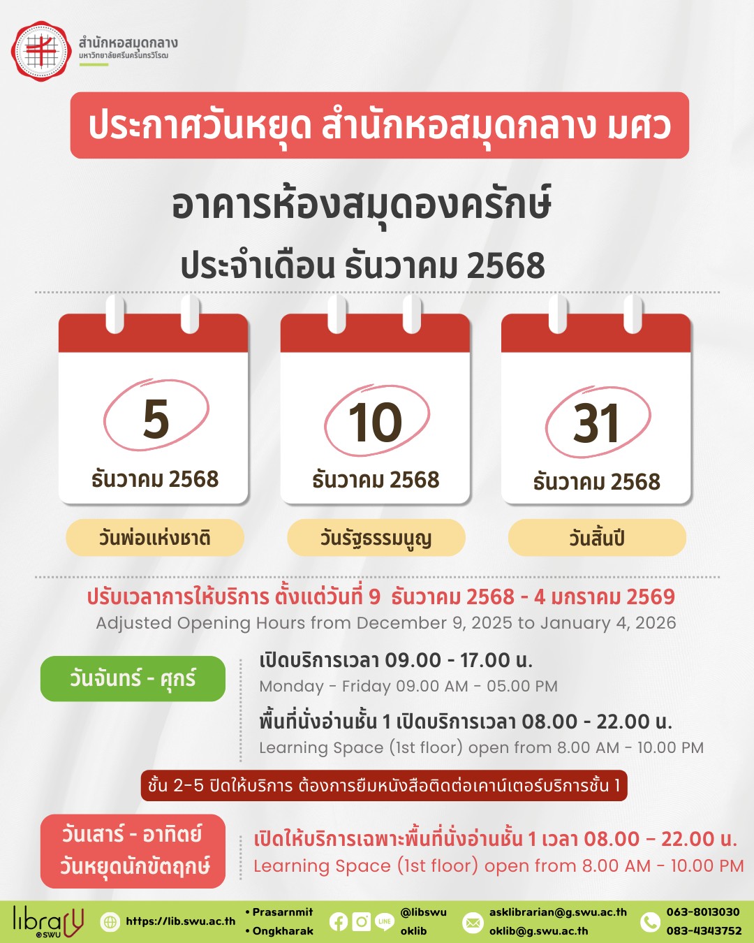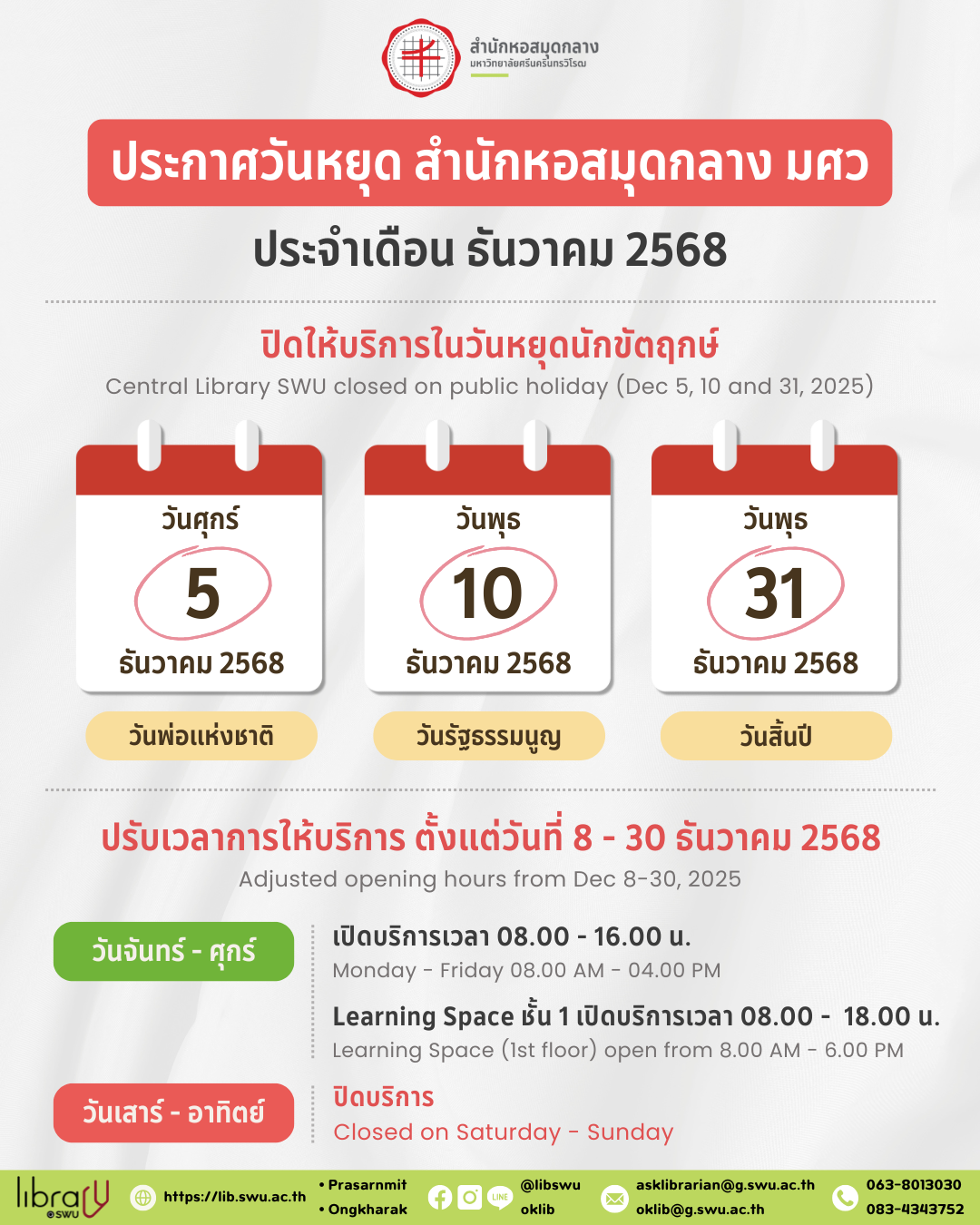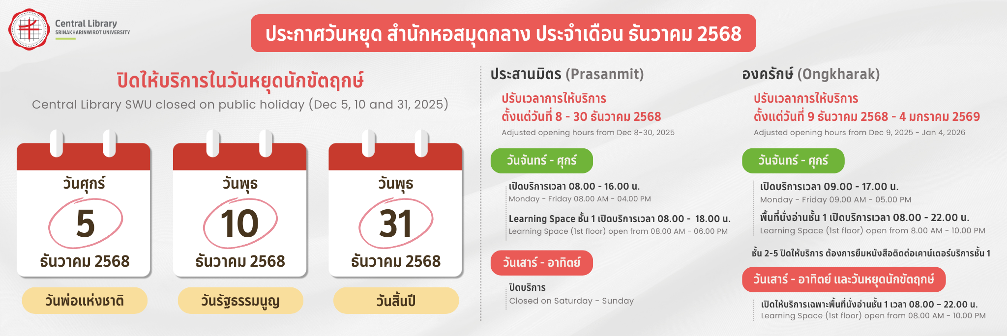 ** ห้องสมุดปิดบริการวันหยุดนักขัตฤกษ์ ** (เพิ่มเติม)