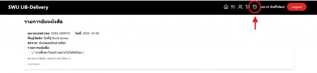 – สถานะ รอดำเนินการ หมายถึง รอเจ้าหน้าที่รับคำขอยืมหนังสือ