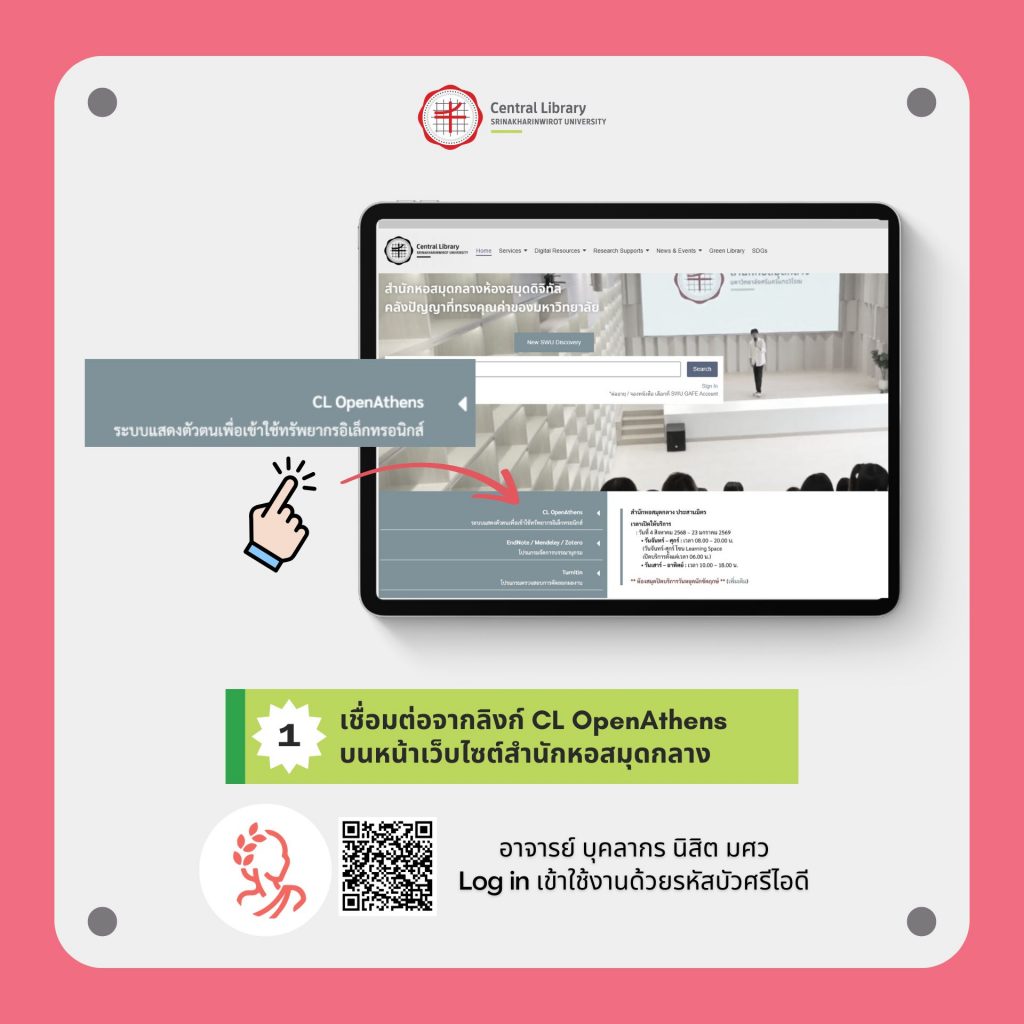 คลิก การเข้าใช้ทรัพยากรอิเล็กทรอนิกส์ผ่านระบบ CL OpenAthens สำหรับผู้ใช้บริการที่ไม่มีรหัสบัวศรี สำนักหอสมุดกลาง มหาวิทยาลัยศรีนครินทรวิโรฒ